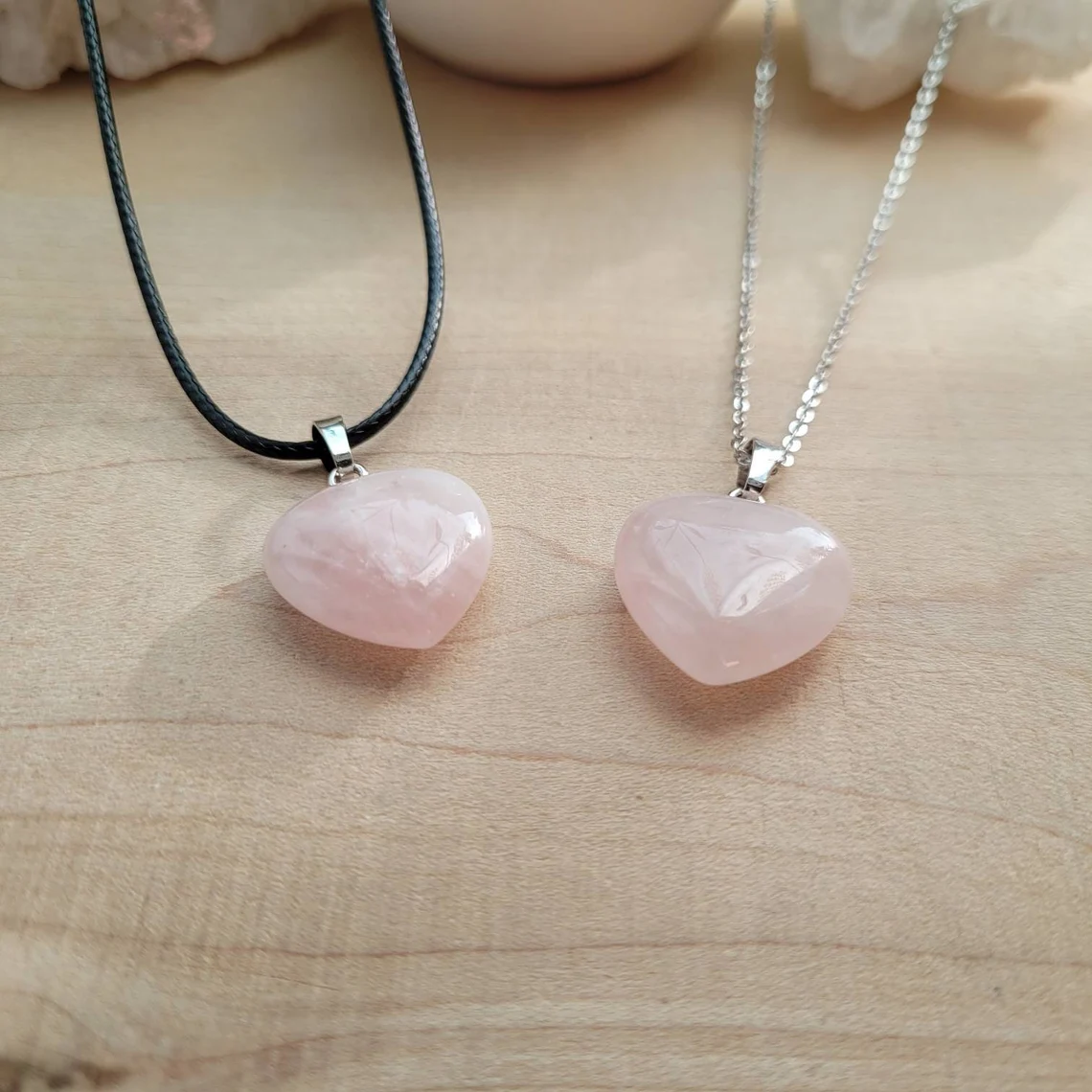 - Material: Genuine rose quartz gemstone in a heart shape.